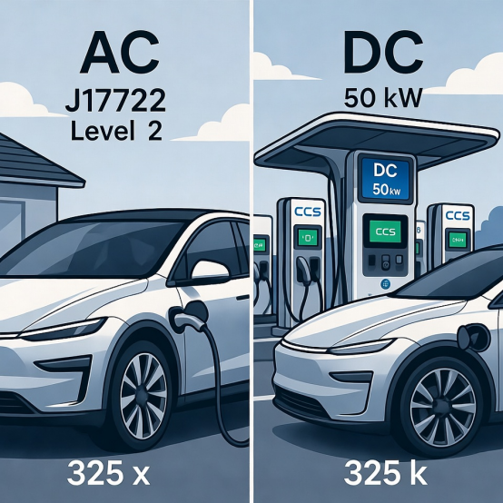 Because DC chargers use larger, externally cooled power electronics and bypass the onboard charger, they can deliver far higher power levels, which is why DC fast charging is significantly faster than AC charging.